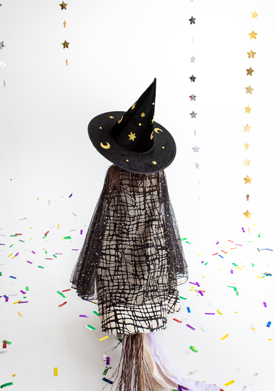 Arany csillagos boszorkány sapka farsangra vagy halloweenre.
