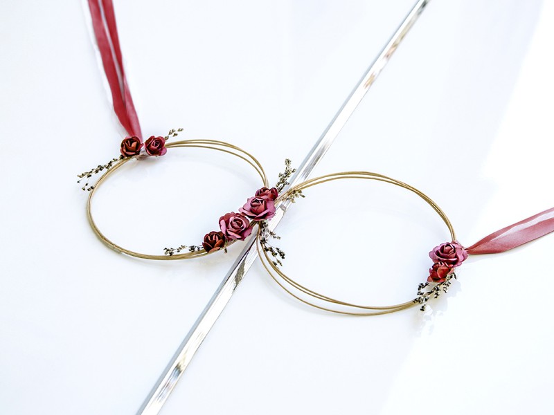 2 kapcsolódó gyűrű átmérője: 18cm, szatén szalag hossza: 2,2m