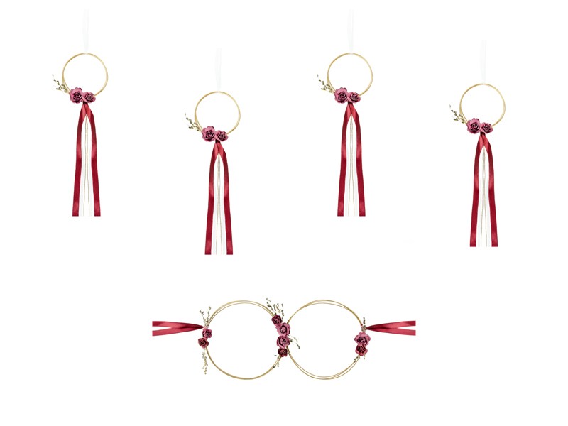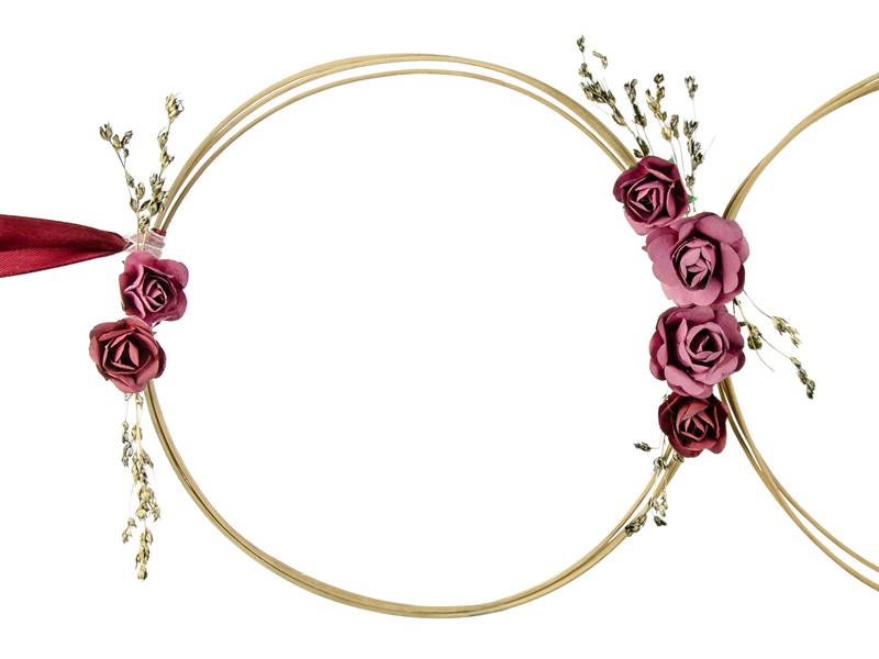 Autódekoráció rattan karikákból bordó színben.