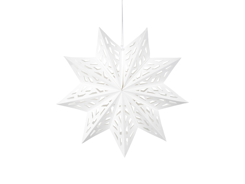 Felakasztható papír csillag 50cm áttört fehér papírból. A termék összeállítást igényel.