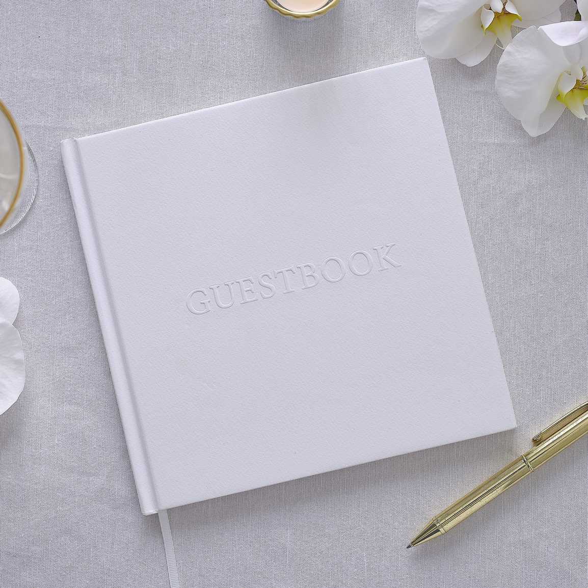 Hófehér dombornyomott vendégkönyv Guest Book felirattal