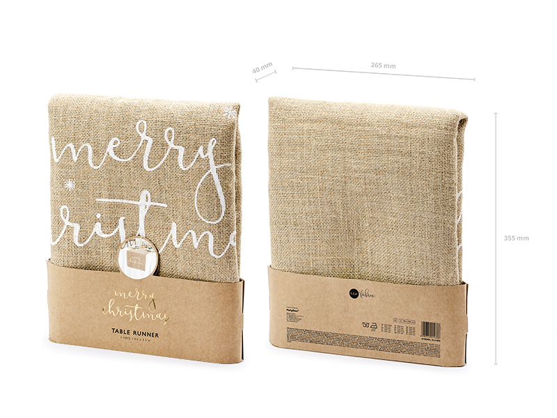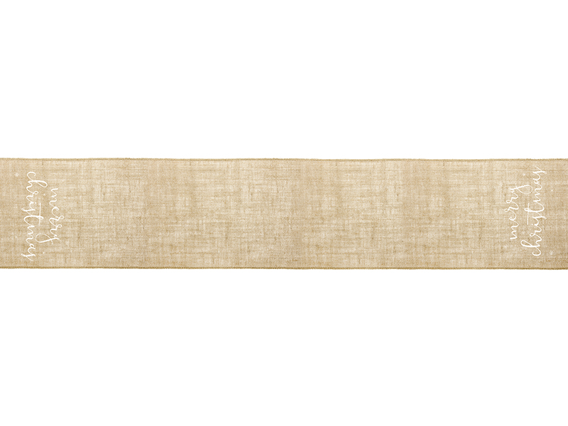 Juta asztali futó Merry Christmas felirattal és csipkés szegéllyel
