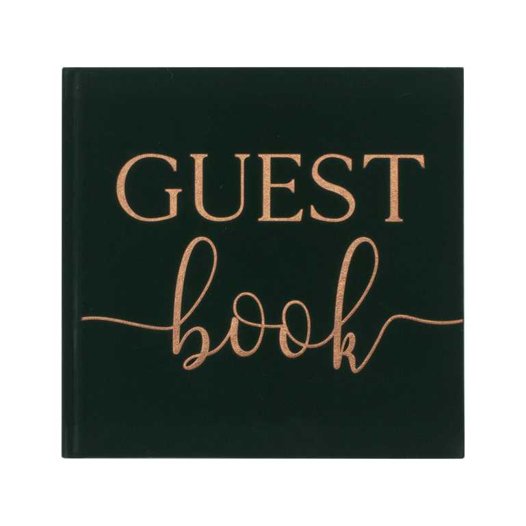 Palack zöld bársony borítású vendégkönyv fóliázott rose gold felirattal.