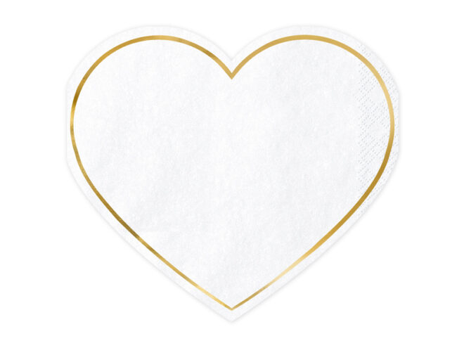 Valentin napi szívecske alakú szalvéta fehér színben arany díszítéssel.